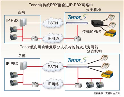 能使H.323和SIP終端得以繼續(xù)適用、還能在IP網(wǎng)絡(luò)中提供緊急呼叫(E911)服務(wù),這些性能使IP網(wǎng)關(guān)對運營商更具吸引力。寬騰公司從Tenor產(chǎn)品開始瞄準了企業(yè)用戶。