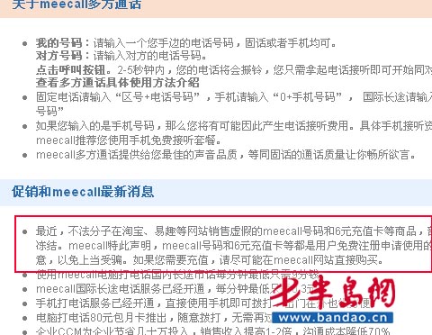 記者了解到,該網(wǎng)絡電話服務商在2007年期間推出推薦用戶注冊獲積分,積分用于兌換通話時長的活動,部分網(wǎng)民使用各種手段進行好友推薦,獲得的積分兌換出的通話時長在網(wǎng)上進行銷售。因此被米酷官網(wǎng)稱為“不法分子銷售虛假的meecall號碼和6元充值卡等商品”。這個解釋也合乎公司的邏輯,但是讓人百思不得其解的是,為什么事隔兩個多月后官網(wǎng)才出面表態(tài)予以制止?而在事發(fā)前官網(wǎng)上也從未有相關提示。更讓記者不得其解的是官網(wǎng)對此事的處理態(tài)度,如果王先生所說屬實,那米酷公司應該做檢討了,畢竟不能把責任全部轉(zhuǎn)嫁于消費者身上,而應該拿出相應處理態(tài)度以及措施來解決問題。截至目前為止,記者在官網(wǎng)未發(fā)現(xiàn)該問題的處理意見。