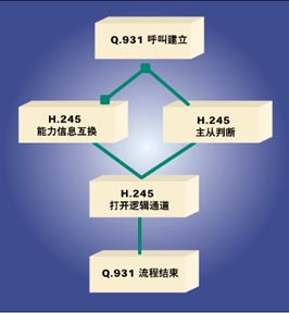 Q.931呼叫建立流程啟動(dòng)呼叫建立過程并且通知遠(yuǎn)程終端有一個(gè)呼入。當(dāng)呼叫建立起來后,某個(gè)終端可能啟動(dòng)H.245規(guī)定的主從判斷流程或能力信息互換流程。每個(gè)終端都需要執(zhí)行能力信息互換流程,但是只要一個(gè)終端執(zhí)行主從判斷流程就可以了。主從判斷和能力信息互換完成后,邏輯信道打通了。最后,該對(duì)話通過另一個(gè)Q.931流程關(guān)閉。