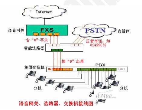 使用網(wǎng)關(guān)電話打國(guó)內(nèi)/國(guó)際其他普通公話或手機(jī),稱為“點(diǎn)對(duì)面模式”。在使用智能路由選線器以后,打出電話時(shí)自動(dòng)根據(jù)首位字頭,例如“0”,判斷選擇市話或者VOIP專線通話,--字頭有“0”,時(shí)自動(dòng)走VOIP網(wǎng)絡(luò)線路,字頭沒有“0”時(shí),選擇走通常的市話線路,完全不改變我們過去使用電話的習(xí)慣!