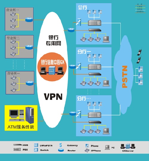 我公司現(xiàn)根據(jù)銀行的特點,在保證內(nèi)部網(wǎng)絡穩(wěn)定、安全、高效和保密性高的特殊要求下幫助銀行實現(xiàn)VOIP,以大大的減輕銀行的營運費用,同時也考慮到銀行將來的網(wǎng)絡擴展與升級換代,在現(xiàn)有的網(wǎng)絡上實現(xiàn)數(shù)據(jù)與語音的同步傳輸,使原有的資源得到了充分的利用,又使得新建的網(wǎng)絡能順利的加入現(xiàn)有的VOIP系統(tǒng),使新的網(wǎng)點一開始就可以低成本運作。