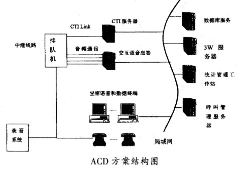 ____提供ACD方案的廠商傳統(tǒng)上是生產程控交換機的廠商。80年代以來,交換機廠家采取 了以下發(fā)展策略:在增強路由能力的基礎上開放交換機的控制接口,以標準的軟、硬件格 式提供CTI-Link,集成成熟的語音產品作為語音服務平臺。因此,ACD方案走的是一條基于 CTI-Link標準、專業(yè)通信和計算機廠家利用各自優(yōu)勢分工合作的路。
