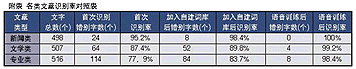 然后,我們又利用聲龍?zhí)赜械脑~匯生成器,讓聲龍自行辨別文章中的詞匯并自動(dòng)添加到自建詞庫中,并針對(duì)其中的一些英文單詞或縮寫對(duì)聲龍進(jìn)行語音識(shí)別訓(xùn)練,之后我們?cè)俅武浫胪黄獙I(yè)文章。結(jié)果非常令人滿意,從附表可以看出識(shí)別率有了明顯提高。最后,我們又錄入了另一篇相同領(lǐng)域的專業(yè)文章中的一段(512字)。首次錄入的錯(cuò)別字有46個(gè),識(shí)別正確率為91%。與第一篇文章相比,識(shí)別率有了明顯提高。