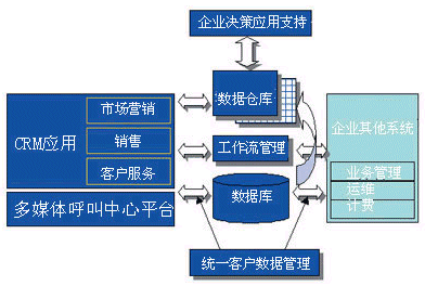 一個完整的客戶關系管理系統(tǒng)應該包括:多媒體呼叫中心系統(tǒng)、客戶關系管理應用、統(tǒng)一客戶數據管理系統(tǒng)和數據倉庫、工作流管理系統(tǒng)和企業(yè)決策應用支持系統(tǒng)。