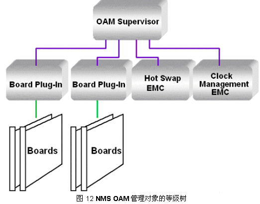 NMS公司的OAM組件是作為Natural Access服務(wù)提供給用戶的,用以管理一個機(jī)架甚至多個機(jī)架上的NMS板卡和軟件模塊。OAM即操作(Operation)、管理(Administration)、維護(hù)(Maintenance),通過OAM可以創(chuàng)建、刪除、查詢OAM下的各組件的配置,啟動、終止或測試組件的運行,以及接收從組件發(fā)出的告警等事件通知。