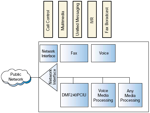 與其它網(wǎng)絡(luò)接口和媒體處理板卡結(jié)合起來, DM/F240-PCIU 和 DM/F300-PCIU定位為提供面向傳真服務(wù)器和統(tǒng)一消息市場(chǎng)段的產(chǎn)品.