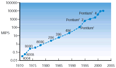 1 圖4顯示了處理器處理能力隨時間的增長而快速增長,以證明摩爾定律。