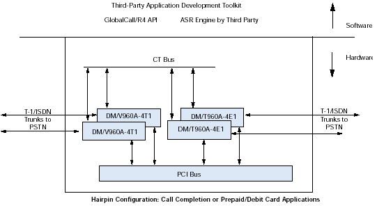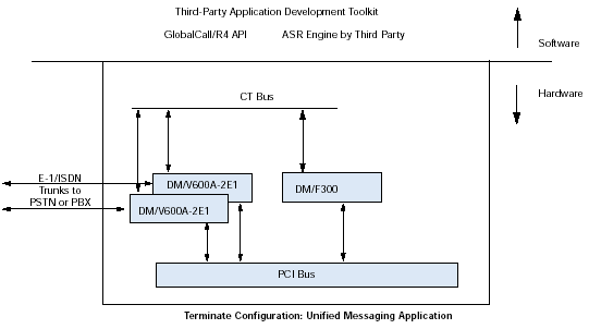 通過訪問計算機電話(CT)工業(yè)標(biāo)準(zhǔn)的ECTF H.100/H.110 CT Bus,利用DM/V-A多功能資源系列板卡,應(yīng)用程序可以具備交換能力以及擴展到其他技術(shù)的能力,諸如網(wǎng)絡(luò)接口(DM/T或者DM/N系列),ATM連接,SS7,以及IP電話。