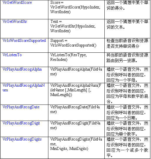 語音識別資源把呼叫者的語音轉(zhuǎn)變?yōu)槲谋咀址。一個VR資源可以對一個語音流數(shù)據(jù)(來自一中繼或會議資源)進(jìn)行識別。