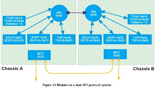 下圖中描述了一個(gè)雙ISUP/TUP/SCCP/TCAP系統(tǒng)中各模塊之間的關(guān)系,以及系統(tǒng)兩部分的config.txt文件中的條目。參見(jiàn)圖15。