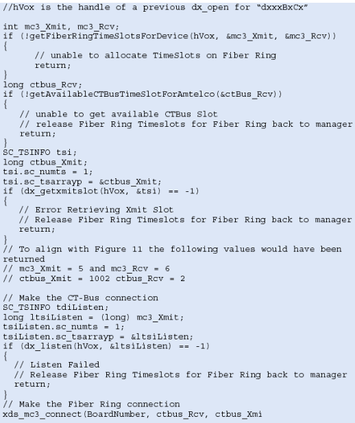 圖12是服務器1上建立連接所需的代碼示例,注意:xds_mc3_listen 和 xds_h100_listen函數(shù)不能以相同的方式看到連接,使用這些函數(shù)以前請參考API手冊確信這些函數(shù)的功能。